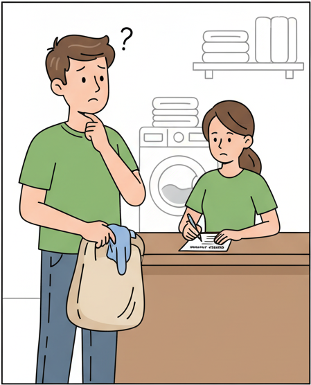 You review and accept the incoming laundry request from the customer.