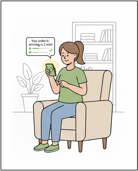 Driver picks up the ready order and delivers it back to the customer.
